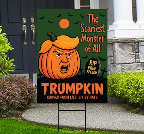 Trumpkin Halloween Protest Yard Sign - Anti-Trump, No Kings In America, Protect Democracy, Resist Fascist Yard Sign with Metal H-Stake