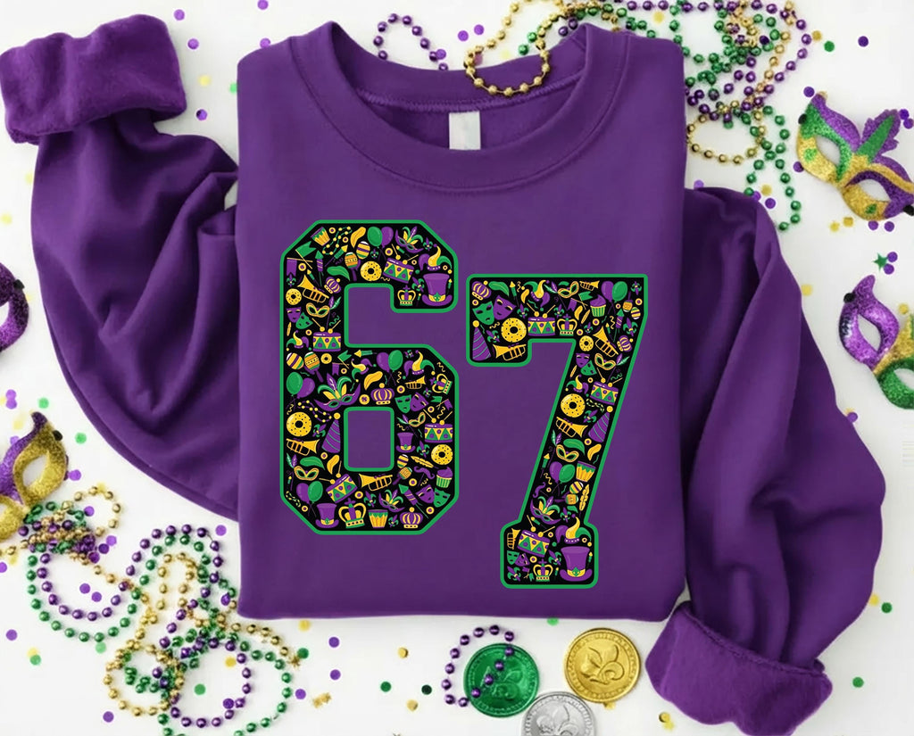 A fun and stylish way to celebrate Mardi Gras with the iconic number 67!