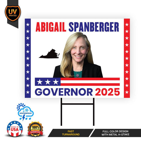 Abigail Spanberger Governor 2025 Yard Sign Is an Engineer Grade Professional Appearance.