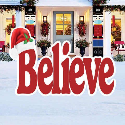 Christmas Believe Yard Sign, Outdoor Holiday Lawn Welcome Decoration with Stakes, Merry Xmas Porch Garden Party Décor for Winter Display