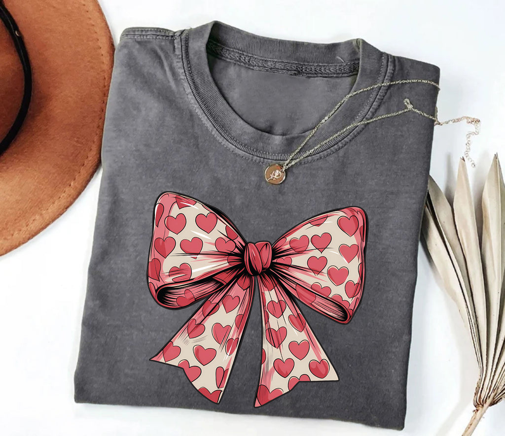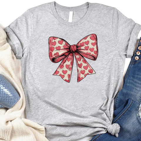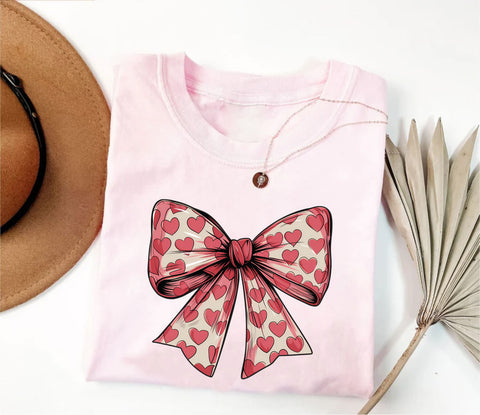 Coquette Valentine's Day Heart Bow Shirt, Valentine's Day Bow Shirt, Valentine Shirt, Coquette Bow Shirt, Valentine Gifts Shirt: 100% cotton, high-quality knitted fabric, soft touch with a classic fit that lies flat. Keep cool and dry with our Coquette Valentine's Day Heart Bow Shirt. Our quick-dry fabric helps evaporate moisture and naturally regulate body temperature. It can be worn alone or as a layering piece adding depth to your wardrobe. Crafted with care, each piece is made to order, ensuring a unique, personalized touch just for you