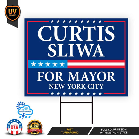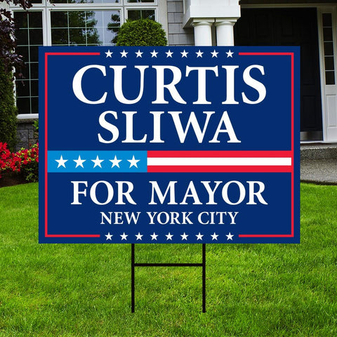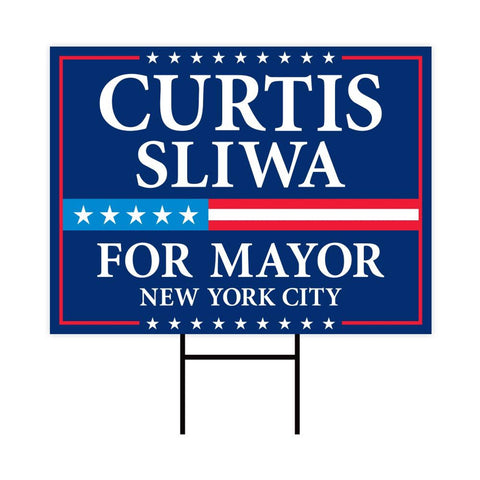 Curtis Sliwa For New York City Mayor 2025 Election Yard Sign, Corrugated Plastic Election Race Red White & Blue Sign with Metal H-Stake
