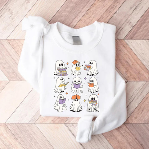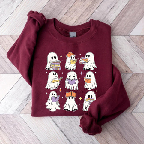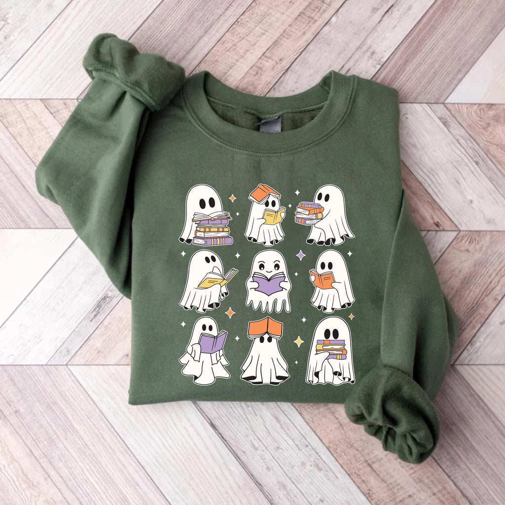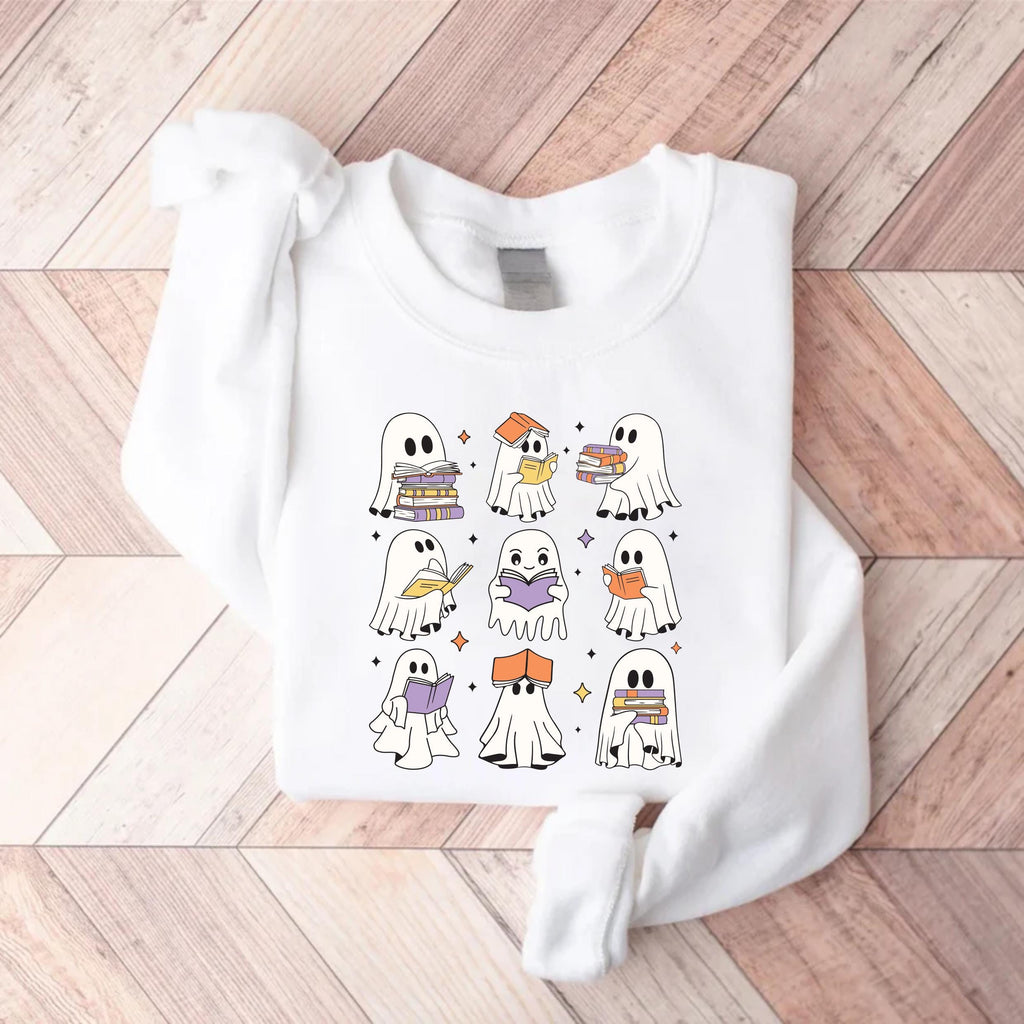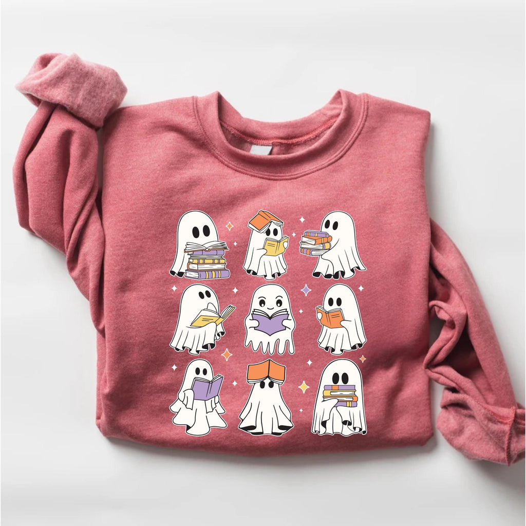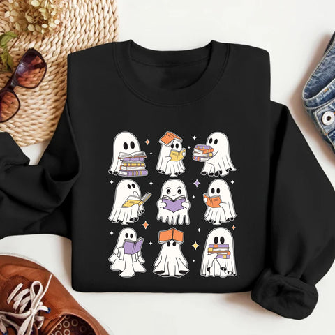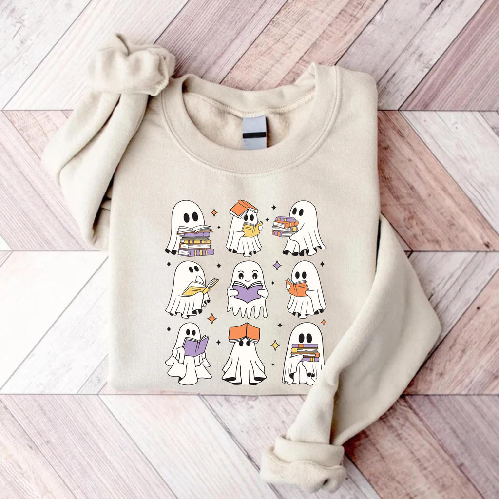 Ghost Reading Books Sweatshirt, Halloween Book Lover Sweater, Spooky Season, Teacher Librarian Halloween Gift, Bookish Halloween Sweatshirt