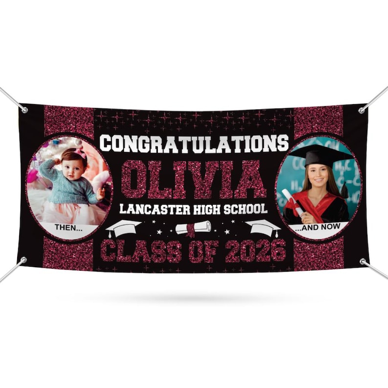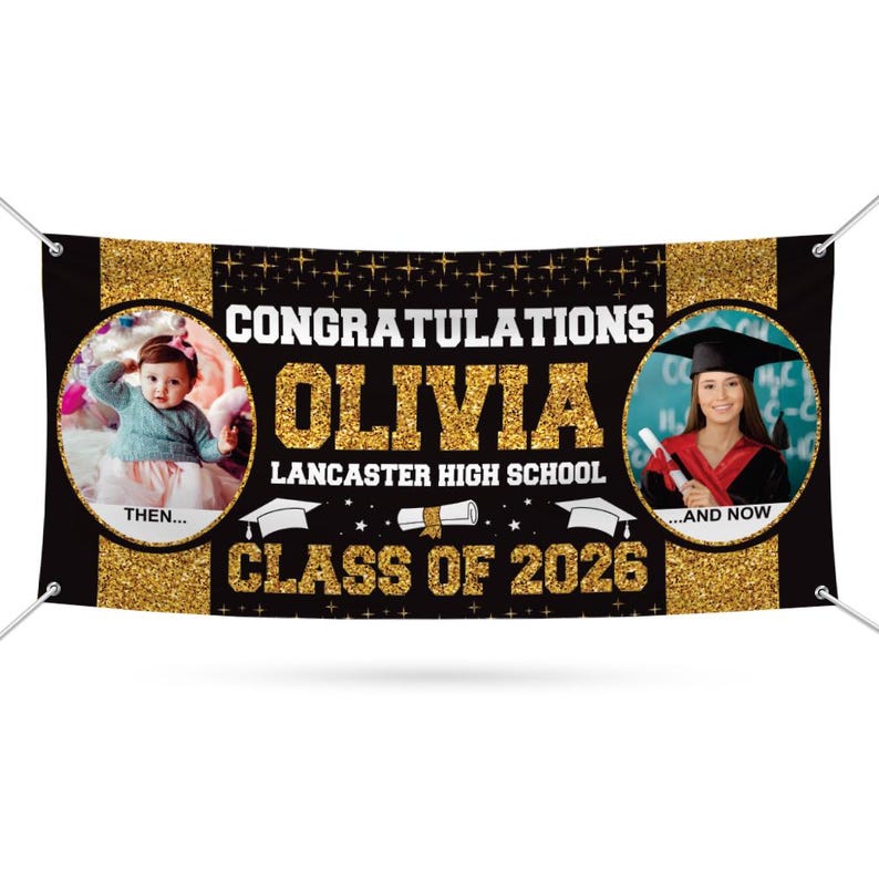 Graduation 2026 Personalized Banner Sign With Photo - 13 Oz Heavy Duty Waterproof Class of 2026, Graduation Announcement, Graduation Vinyl Banner With Metal Grommets. All Banners Are Printed Using Industry Best Latex Ink Technology and All Banners Include Metal Grommets in Each Corner for Easy Hanging. Larger Banners Receive Additional Grommets and Reinforced Hemming Along All Sides. We Suggest All Grommets Be Used During Installation To Prevent Damages To The Banner. Perfect for Indoor And Outdoor Use Custom School Colors Class of 2026 Graduation Party Decorations Banner Waterproof And UV Safe. MADE IN USA: 100% Satisfaction Guaranteed Crafted with care, each piece is made to order, ensuring a unique, personalized touch just for you