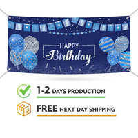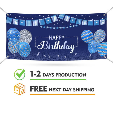 Happy Birthday Banner Decoration, 13 oz Waterproof Glitter Birthday Theme Background for Birthday Party Vinyl Banner with Metal Grommets. All Banners Are Printed Using Industry Best Latex Ink Technology and All Banners Include Metal Grommets in Each Corner for Easy Hanging. Larger Banners Receive Additional Grommets and Reinforced Hemming Along All Sides. We Suggest All Grommets Be Used During Installation To Prevent Damages To The Banner. Perfect for Indoor And Outdoor Use Glitter Birthday Backdrop Banner Sign Waterproof And UV Safe. MADE IN USA: 100% Satisfaction Guaranteed.