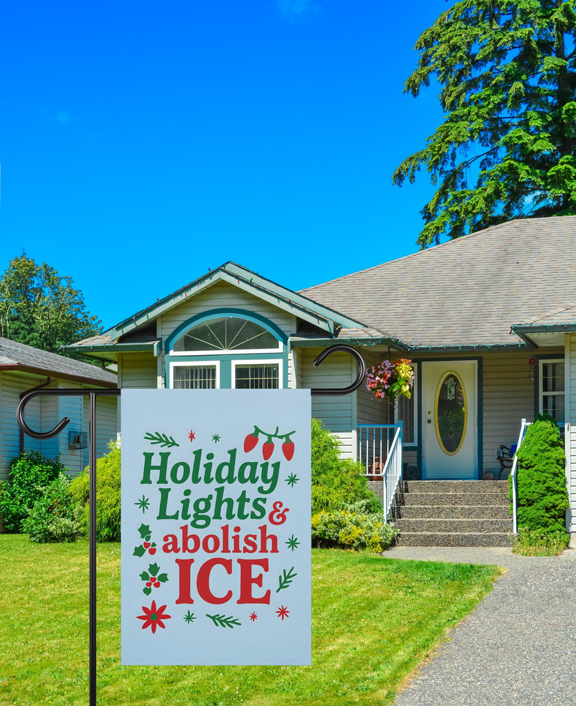 Holiday Lights & Abolish ICE Christmas Protest Garden Flag, Double Sided, No Kings In America, Pro Democracy, Anti-Trump, Anti Fascist Flag