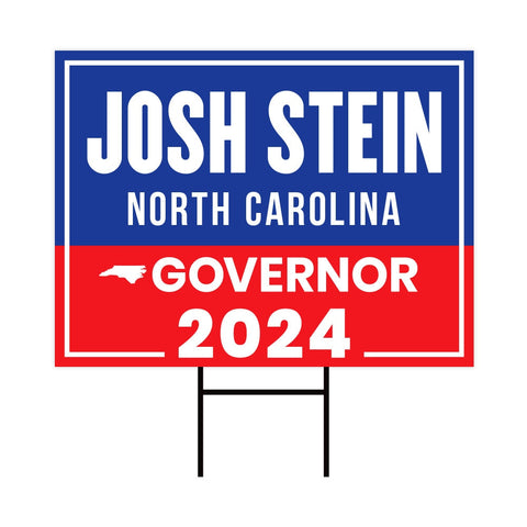 Josh Stein For North Carolina Governor Yard Sign - Coroplast 2024 Governor Elections Race Red White & Blue Yard Sign with Metal H-Stake. Economical and durable, our Coroplast Yard Signs are a staple of outdoor advertising. These outdoor Josh Stein 2024 Yard Sign full color direct printed graphics are vertically fluted for use with an H-Stake. Coroplast is typically used for yard, parking, real estate, and election signs. They are waterproof. Crafted with care, each piece is made to order, ensuring a unique, personalized touch just for you