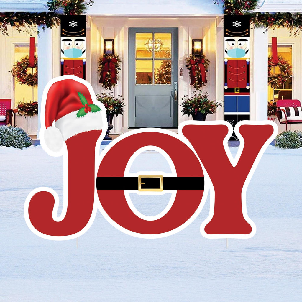 Bring cheerful holiday spirit to your outdoor space with this JOY Christmas Yard Sign. Designed with a bold festive red finish, Santa hat accent, and classic belt detail, this sign instantly adds warmth and charm to your front yard, walkway, garden, or porch. It’s the perfect way to welcome guests and spread Christmas joy all season long.