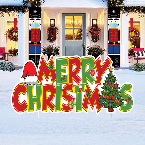 Add instant holiday cheer to your home with this vibrant Merry Christmas Yard Sign! Featuring bold red and green lettering with festive elements like Santa’s hat and a Christmas tree, this sign is the perfect way to greet guests and spread joy all season long.