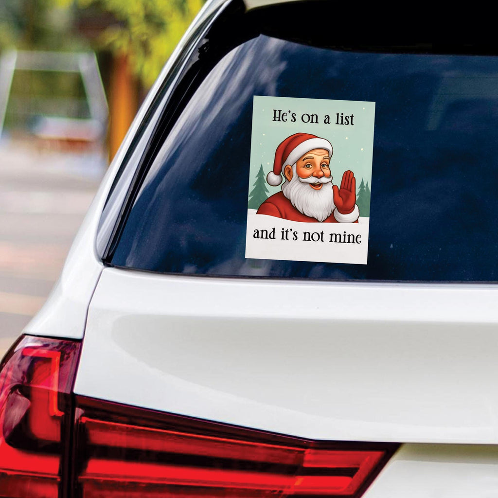 No Kings In America Vinyl Sticker, He's on a list, Anti-Trump, FDT Winter Santa Claus Sticker, Resist Fascism Car Bumper Sticker