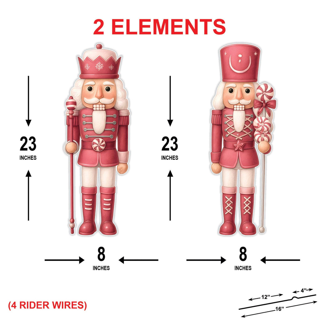Add a touch of elegance and festive charm to your outdoor display with our Pink Nutcracker Yard Signs Set. Featuring two beautifully detailed nutcrackers in candy cane tones of pink, white, and red, these decorations bring a whimsical yet classic look to your Christmas setup. Made from durable 4mm corrugated plastic, they are UV-printed for bright, fade-resistant color and come with rust-free metal stakes for easy installation in lawns, gardens, or patios.