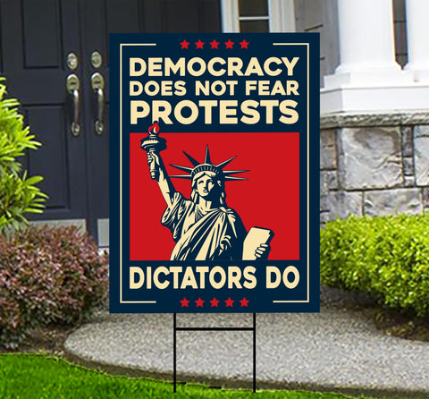 No Kings Protest Yard Sign - Democracy Not Oligarchy, Different Hat, Anti-Trump, Resist Racism, Resist Fascism Yard Sign with Metal H-Stake. Economical and durable, our Coroplast Yard Signs are a staple of outdoor advertising. These outdoor Resist Yard Sign full color direct printed graphics are vertically fluted for use with an H-Stake. Coroplast is typically used for yard, parking, real estate, and election signs. They are waterproof. Crafted with care, each piece is made to order, ensuring a unique, personalized touch just for you
