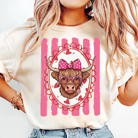 Spread Valentine's cheer with this adorable Highland Cow Valentine Shirt! Preppy, western, and sweet — perfect for adding a cute touch to your love-season outfit.