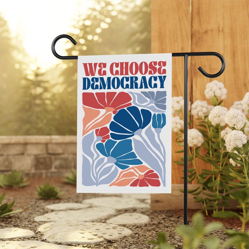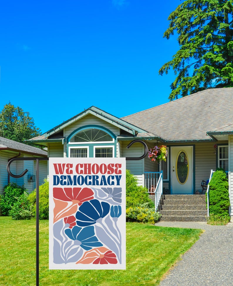 Defend Democracy Garden Flag, 12x18 Inch Double Sided, Resist Hate Flag, Anti-Trump Flag, Resist Racism Flag, Resist Fascism Flag