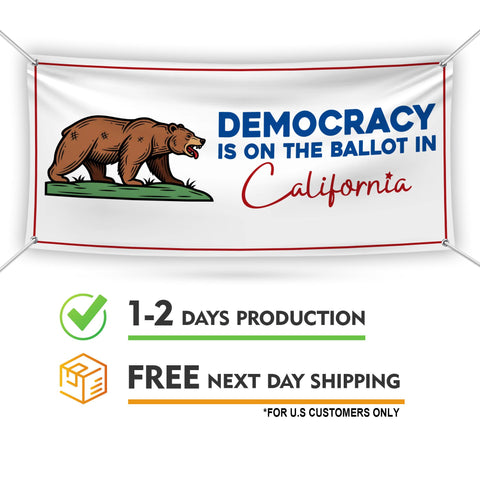 Yes on Prop 50 Banner Sign, Election Rigging Response Act Sign, Anti-Gerrymandering California, Political Vinyl Banner with Metal Grommets. All Banners Are Printed Using Industry Best Latex Ink Technology and All Banners Include Metal Grommets in Each Corner for Easy Hanging. Larger Banners Receive Additional Grommets and Reinforced Hemming Along All Sides. We Suggest All Grommets Be Used During Installation To Prevent Damages To The Banner. Perfect for Indoor And Outdoor Use Yes on Prop 50 Banner Waterproof And UV Safe. MADE IN USA: