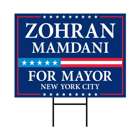 Zohran Mamdani For New York City Mayor 2025 Election Yard Sign, Corrugated Plastic Election Race Red White & Blue Sign with Metal H-Stake. Economical and durable, our Coroplast Yard Signs are a staple of outdoor advertising. These outdoor Zohran Mamdani For New York City Mayor 2025 Yard Sign full color direct printed graphics are vertically fluted for use with an H-Stake. Coroplast is typically used for yard, parking, real estate, and election signs. They are waterproof. Crafted with care, each piece is made to order, ensuring a unique, personalized touch just for you