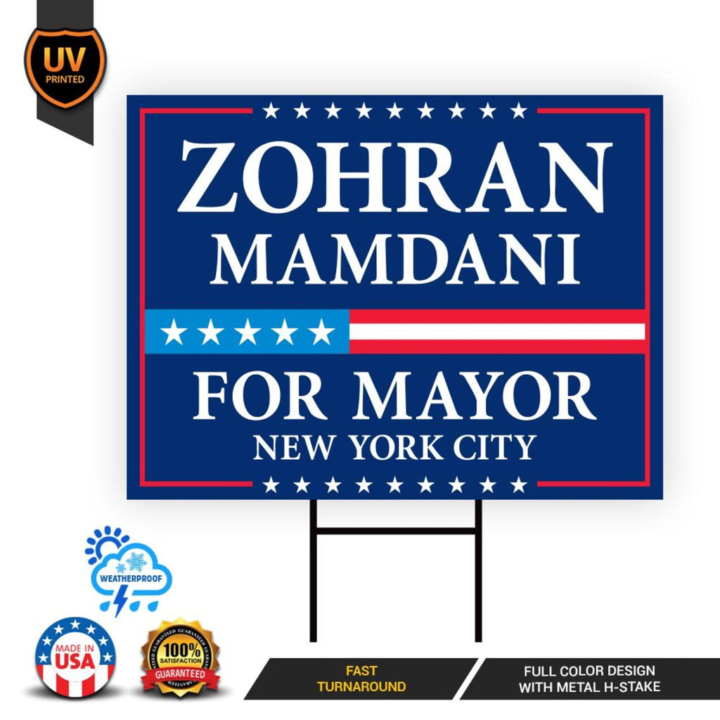 Zohran Mamdani For New York City Mayor 2025 Election Yard Sign Is an Engineer Grade Professional Appearance.